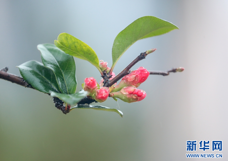 2月21日,四川省华蓥市城北公园的海棠花含苞欲放。新华网发(邱海鹰 摄)