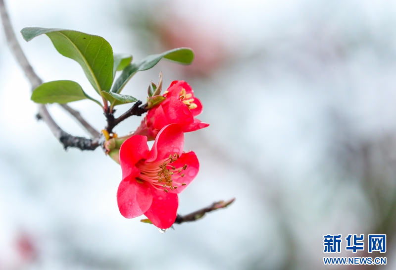 2月21日,四川省华蓥市城北公园相继绽放的海棠花。新华网发(邱海鹰 摄)