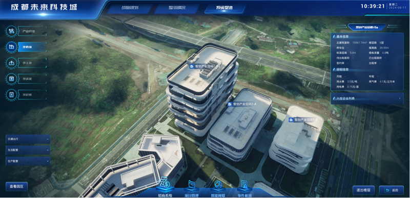 何为数字平行世界?“载体画像”又如何服务企业?据成都未来科技城发展服务局相关负责人介绍,数字平行世界建有一个包含未来科技城地形地貌、植被、天气、建筑、路网等数字化模型的三维场景底座,该场景通过采用数字孪生理念,可展示未来科技城的战略规划、园区空间、交通保障、产业分布、招商服务以及园区情况等。数字平行世界还通过“数字孪生”技术打造智能化体系,可实现载体基础数据动态收集和交互式“看载体”,以“载体画像”助力企业获得生产经营载体。