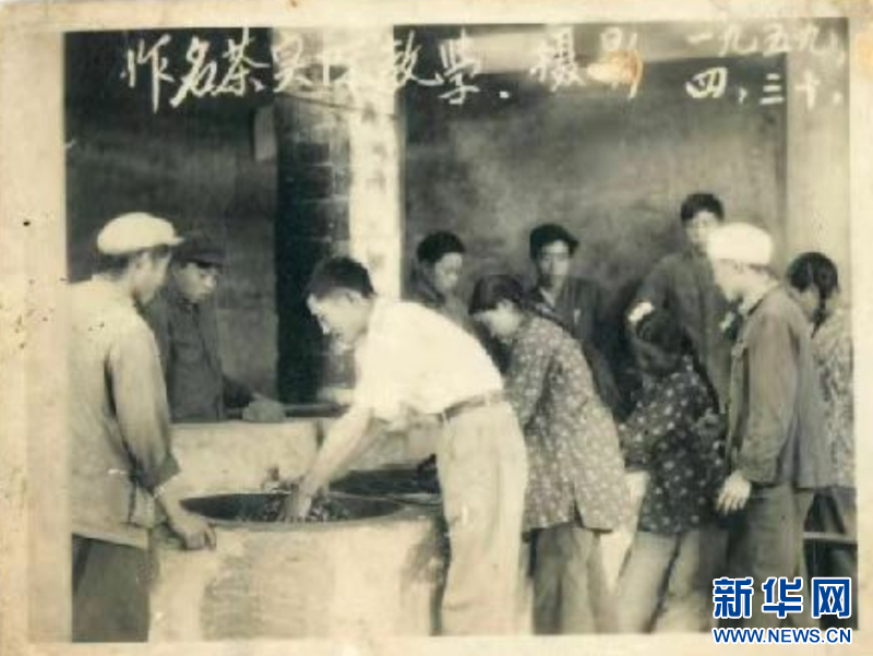 原四川外贸集团派制茶专家范俊峰(左三)在马边县传授制茶技术(资料图片)。(马边县农业农村局供图)
