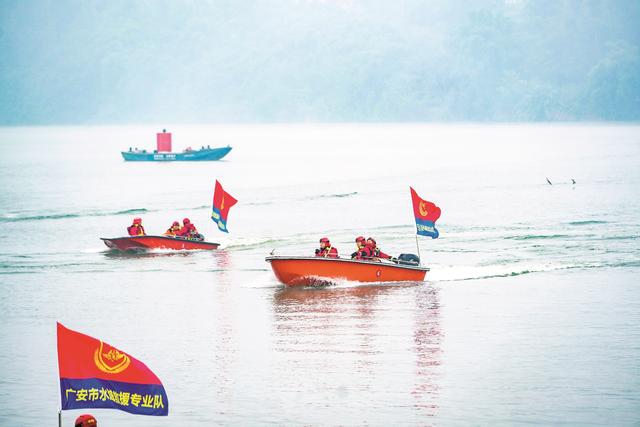 随着演练推进,当嘉陵江南充、广安交界断面上游发现油污,南充市立即预警通报下游广安市,广安市迅即响应,成立联合指挥部,研判水质污染及处置情况,在跨省市交界断面开展联合应急监测和污染拦截处置,在沿江水源地及水厂开展水质监测、污水拦截、社会稳定等应急处置工作。