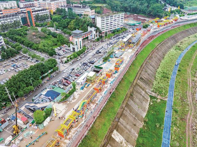 12月8日,俯瞰位于广安区城北滨江路渠江畔的“千年渠江恋·广安不夜城”项目建设现场一角。(张波 摄)
