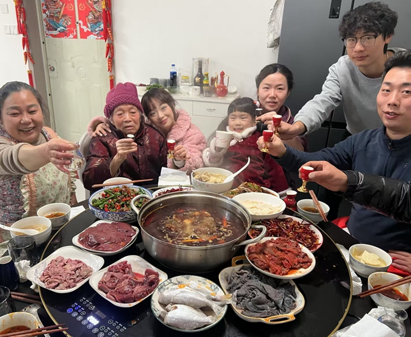 新华网成都1月28日电(记者 谢佼)过年就要有热辣滚烫的感觉!辞旧迎新的除夕夜,川味年夜饭端上了桌。祝福声拂去了人们的疲劳,鼓足了新的劲头。