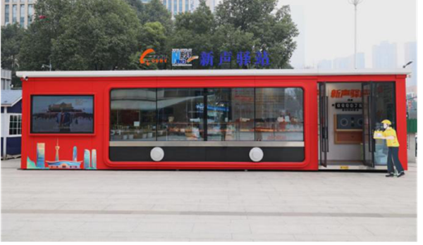 简介:该点位位于成都高新区桂溪街道益州社区锦城万达广场,由新华网与成都高新区桂溪街道合作共建。它的外观造型形似收音机,创意来源于“半部电台的故事”,寓意以创新的载体、创新的表达,融合新华社全媒体产品,让党的创新理论“飞入寻常百姓家”。驿站设置阅读展示区、休闲区、活动区以及便民服务区。在阅读展示区,《新华每日电讯》《参考消息》《经济参考报》《瞭望》《半月谈》等新华通讯社报刊、杂志在驿站显著位置展陈,免费提供给新就业群体、社区群众阅览;大屏上则播放视频等产品。在休闲区和活动区,新声驿站联合各方资源力量,组织开展法律援助、义诊检查、心理健康咨询、健康讲座、技术技能培训、文艺表演、安全文明讲座等实践项目。便民服务区放置了共享充电宝、微波炉、便民雨伞等,免费提供热水、手机充电、冷藏热餐等便民服务。