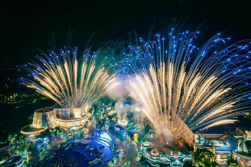 烟花秀。(自贡方特恐龙王国 供图)