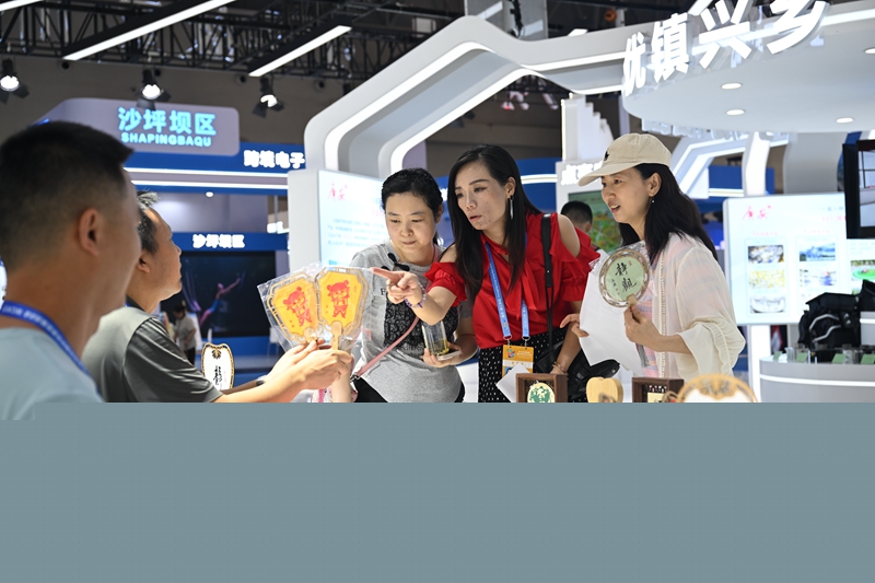 从参展企业来看,虽然企业是“熟面孔”,但都带来了新产品。武胜剪纸省级代表性传承人谭志君的展位前,一把剪刀在红纸上灵活“游走”,片刻间,沿口古镇的形象便跃然纸上,“今年,沿口古镇惊艳亮相,我就把古镇‘剪’出来带上了西洽会。”谭志君说。