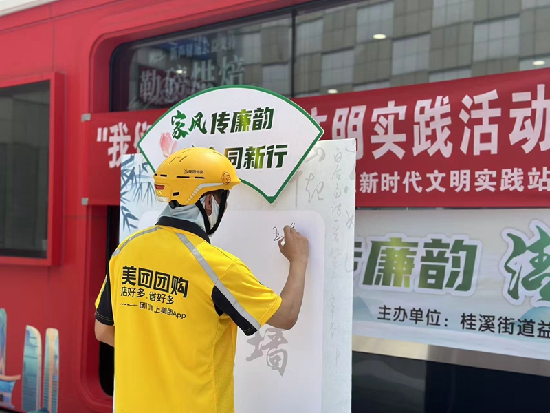 活动还特别邀请了辖区内的部分新就业群体,设置“诚信送餐,不取一针一线”廉洁承诺打卡墙,引导从业者们签字明志。同时,安排专业维修人员为外卖小哥的电动车提供安全检修服务,张贴“清风骑士”身份标识贴纸,强化职业荣誉感。以“安全护航+廉洁承诺”双行动传递“车轮上的清风正气”,推动廉洁文化融入新业态服务场景。