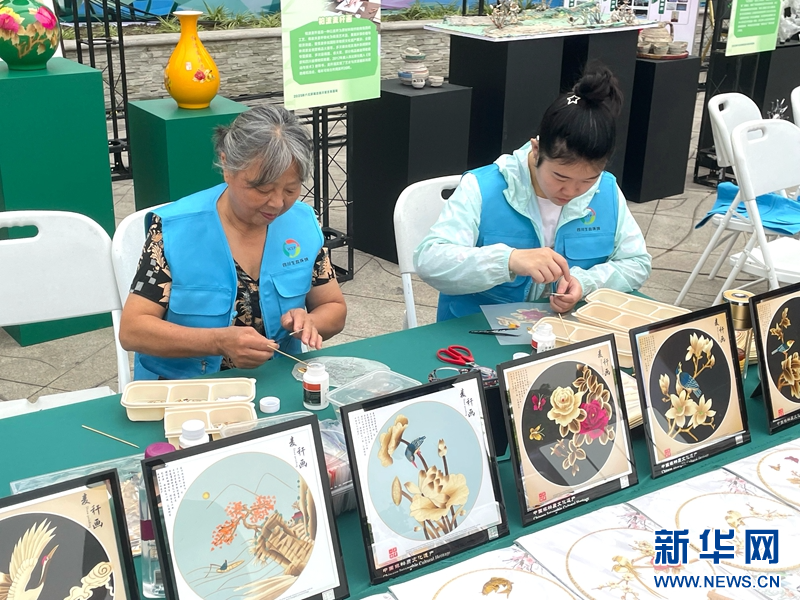 手工艺人现场展示如何将麦秆变为艺术品。新华网吴晓 摄
