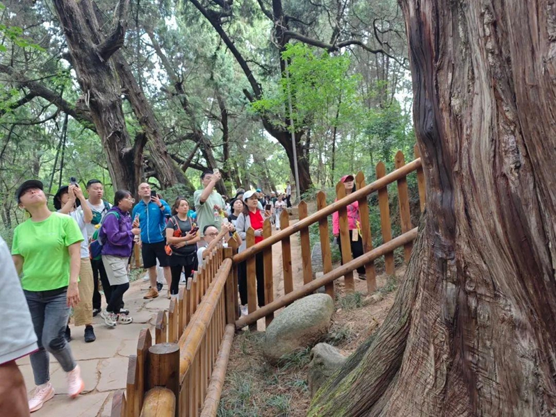 8日上午,重庆2025“游剑门关 走古蜀道”徒步游活动在翠云廊景区游客中心正式举行。启动仪式后,嘉宾们首先参观了翠云廊景区,在讲解员的带领下,漫步于苍劲挺拔的古柏林间,近距离观赏了“剑阁柏”“帅大柏”等名木古树,感受“三百长程十万树”的壮阔景象。随后,徒步队伍从剑阁县汉阳镇出发,穿越黄连垭等历史节点,沿途千年古柏夹道,驿道遗迹斑驳,专家现场讲解古树保护与蜀道文化,让徒步成为“移动的课堂”。
