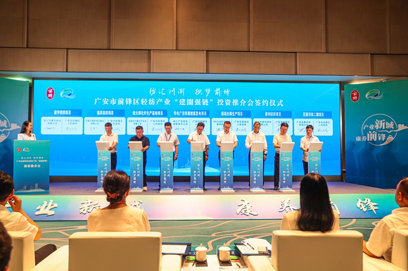 近日,四川省广安市前锋区举行“纺汇川渝 织梦前锋”轻纺产业“建圈强链”投资推介会,吸引国内轻纺行业协会、知名企业家等150余名代表,共享产业机遇、共谋发展新篇。活动现场签约项目11个,涉及纺织智造、印染处理等类别。