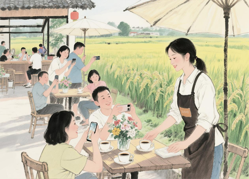 32岁:田野带给我无限希望,我长出了新梦想:千村飘出咖啡香。(席秦岭 郭正 李小岚 丁平 图片由AI辅助制作)