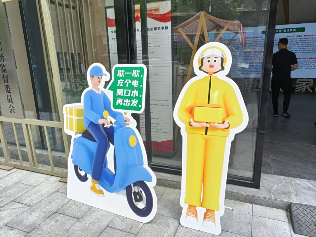 在三瓦窑社区党群服务中心,快递员小李在忙碌的送件间隙来到这里休息。他感慨地说:“现在有了这个线上地图,能快速找到地方,里面有空调、热水,还能充电,感觉特别贴心。”