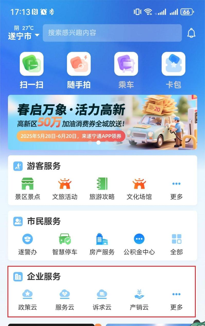 遂宁通App的企业服务专栏。(遂宁市委宣传部 供图)