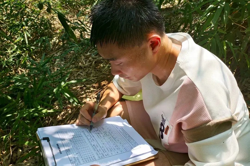 监测人员记录生态样地勘查情况。(四川省生态环境厅 供图)