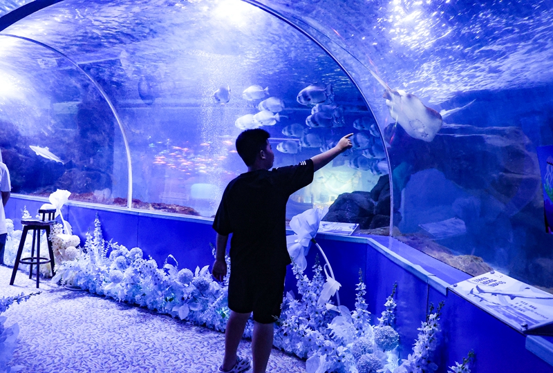为迎接暑期客流高峰,海洋探索馆不仅增加了美人鱼表演和海狮表演的场次,还新增了赶海乐园和海洋科普讲解等特色活动。“小朋友们可以亲手制作简易海洋标本。”海洋探索馆馆长郑智介绍,馆内专职讲解员会带领孩子们近距离观察、记录海洋生物,让展板上的知识真正“走进”掌心。