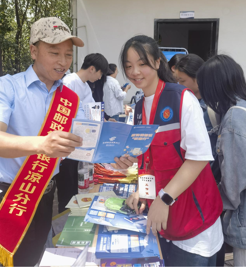 在活动现场,邮储银行凉山州分行的工作人员采用“面对面讲解+互动问答”的形式,结合学生的实际需求展开宣讲。工作人员深入剖析了“校园贷”“电信诈骗”等非法金融活动的常见手法及严重危害,传授实用的防范技巧,引导学生增强自我保护意识,守护好个人财产安全。