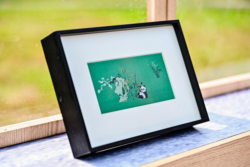 “蜀锦+蜀绣”双非遗·山石熊猫摆台