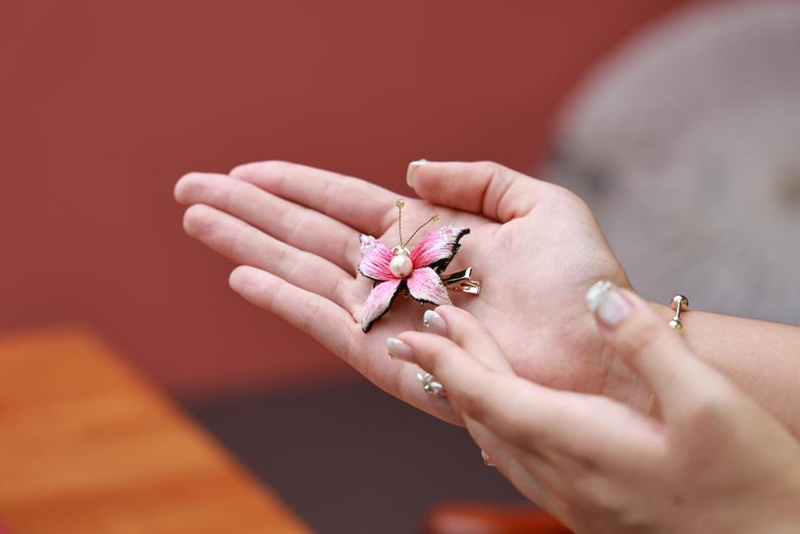羌绣蝴蝶发夹