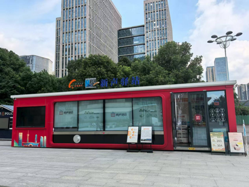 在社区的街角,一抹亮丽的红色静静伫立,这个不大的空间整体外观形似一部电台,视觉设计创意来源于“半部电台的故事”,这就是位于成都高新区桂溪街道益州社区锦城万达广场东侧的新声驿站。在人来人往中,这抹红色承载了一段段暖心的故事。这里不仅是党的创新理论宣传阵地、多彩文明实践活动的实践基地、新就业群体和群众身边的暖心驿站,也是人民建议征集点。