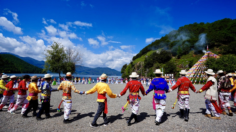 摩梭青年跳起热情的甲搓舞。(盐源县委宣传部 供图)