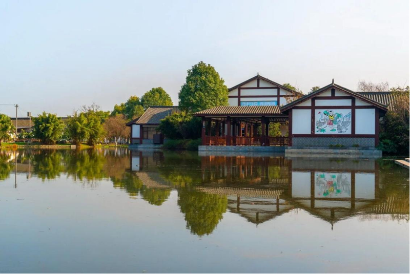 年画村年画湖(上图);年画展示馆(下图)(图据绵竹年画村景区官方网站)