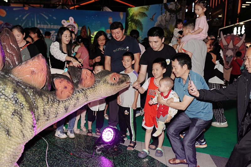 小朋友与智能仿真恐龙机器人互动。(自贡市委宣传部 供图)