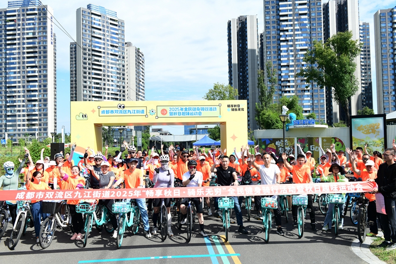 10月13日,成都市双流区九江街道“畅享秋日・骑乐无穷”全民健身骑行活动暨秋日趣味运动会举办,170余名居民及骑行爱好者踊跃参与,在轻松氛围中感受运动乐趣与城市秋景。