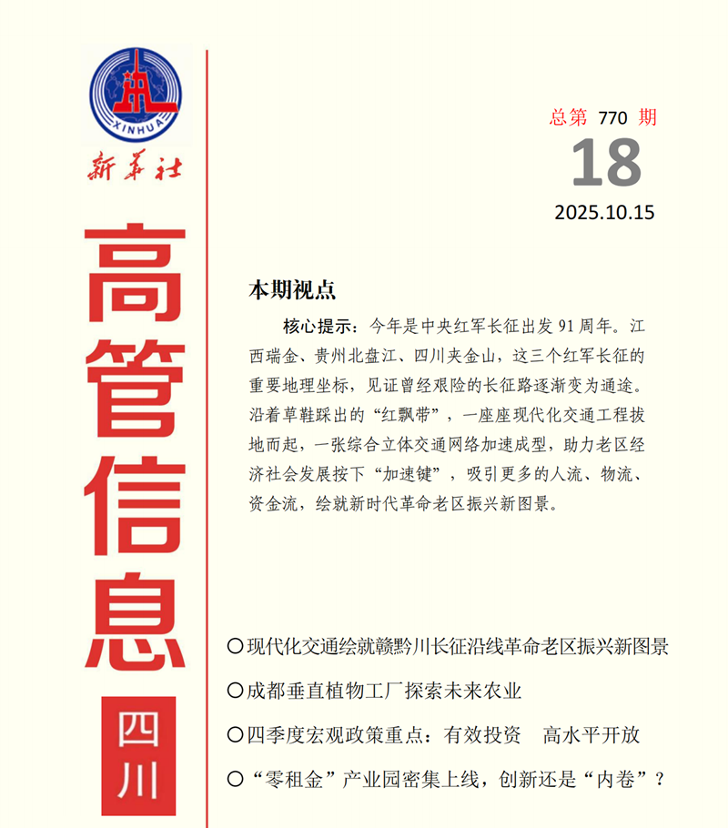 《高管信息·四川》刊物由新华社四川分社着重打造,稿件立足四川在全国发展大局中的战略定位,以做好经济宣传引导为重点,努力为奋力谱写中国式现代化四川新篇章献智献策。