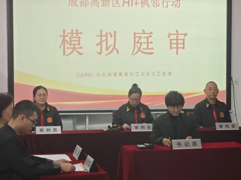 在深入推进基层治理体系与治理能力现代化的实践中,成都高新区社会工作部立足职能定位,以“HI+枫邻行动”模拟法庭普法系列活动为抓手,精准聚焦社区治理法治痛点,创新打造沉浸式、立体化普法模式,实现从个体纠纷化解到集体权益维护的实践升级,为党建引领基层法治建设提供了可复制、可推广的高新样本。