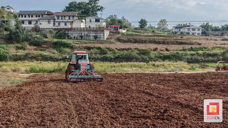近日,自贡市沿滩区永安镇花椒大豆现代农业园区,500亩小麦播种现场机器轰鸣,拖拉机穿梭在田间翻耕整地,村民们紧随其后补苗覆土。永安镇昔日闲置的“冬闲地”正式变身忙碌的“农忙地”。