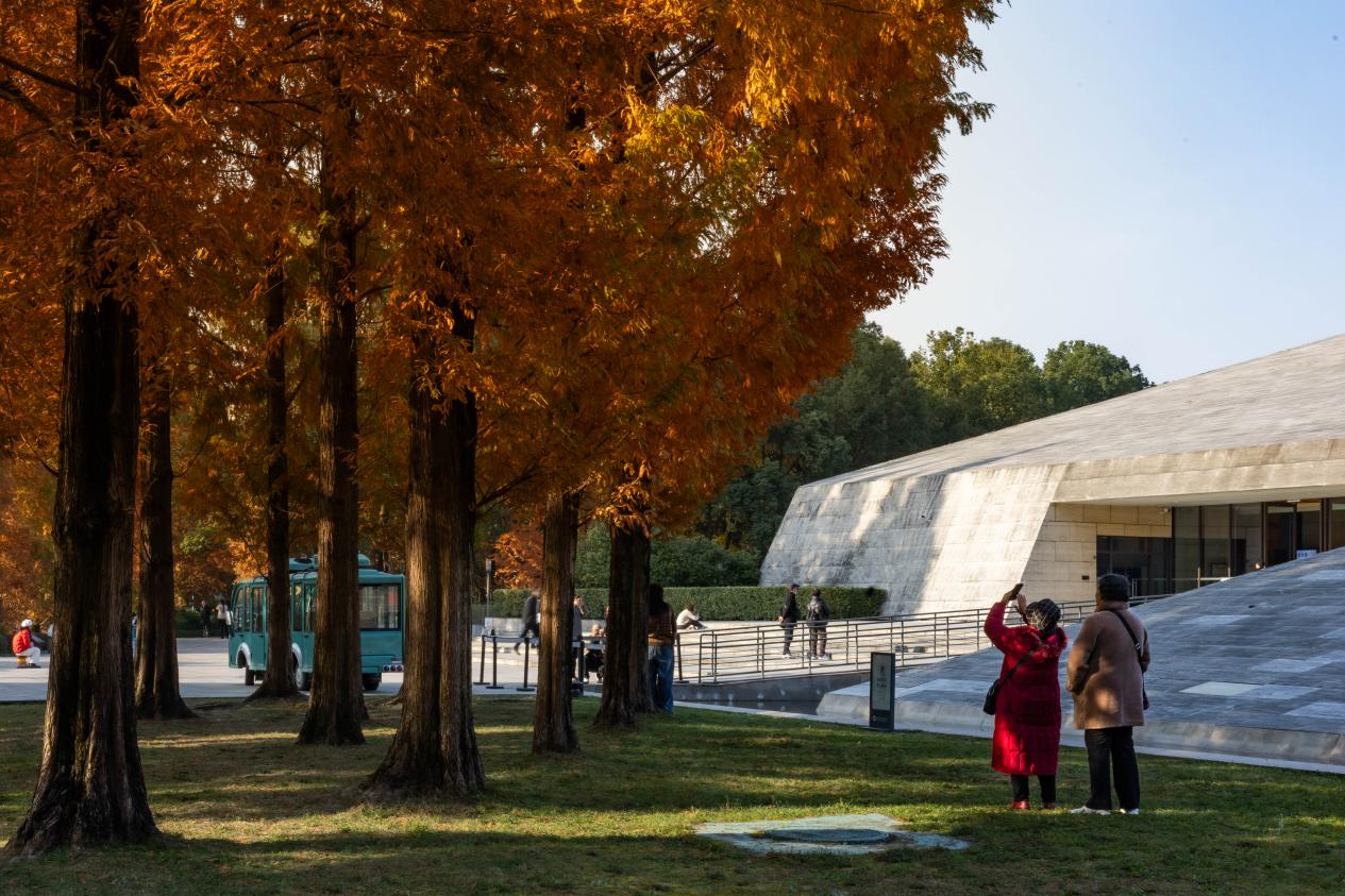 临近闭馆时间,前来参观的市民、游客陆续离开。新华网发(张可凡 摄)