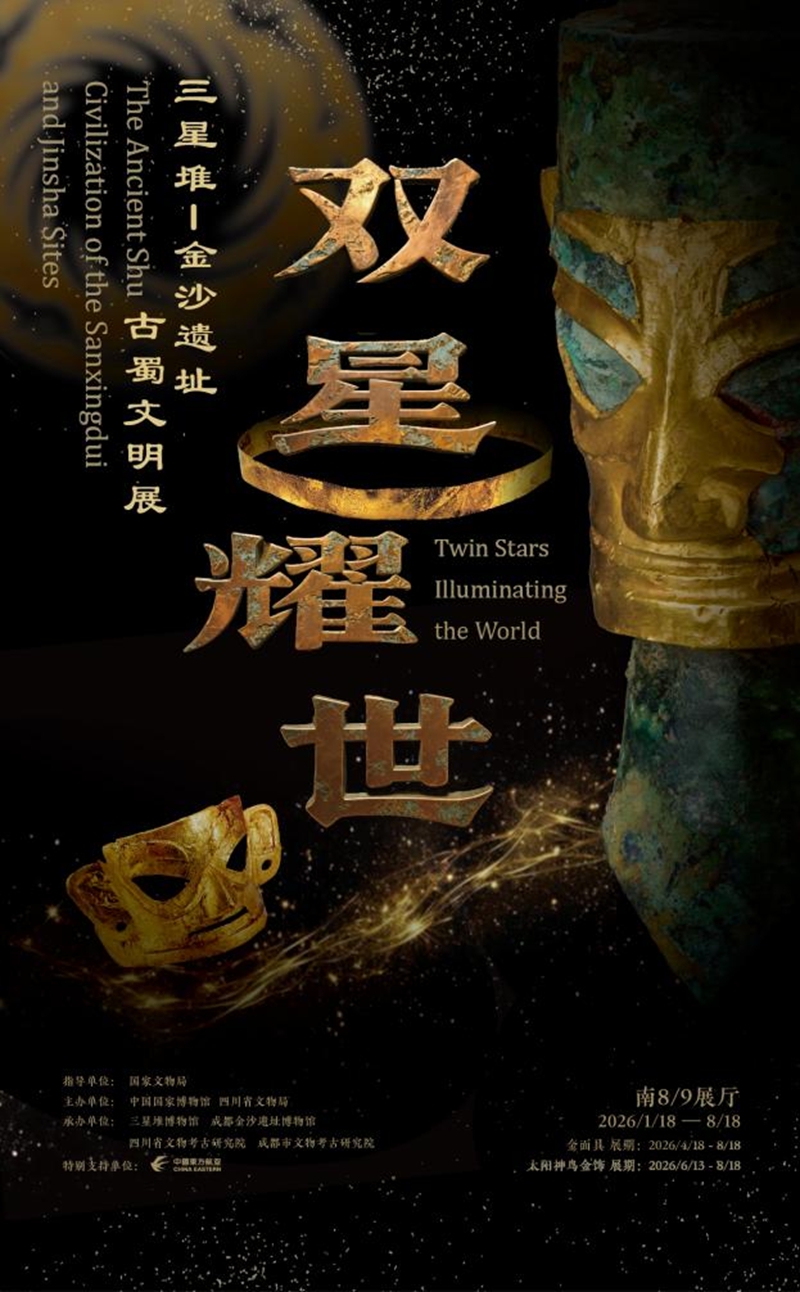 双星耀世——三星堆—金沙遗址古蜀文明展海报。(中国国家博物馆 供图)
