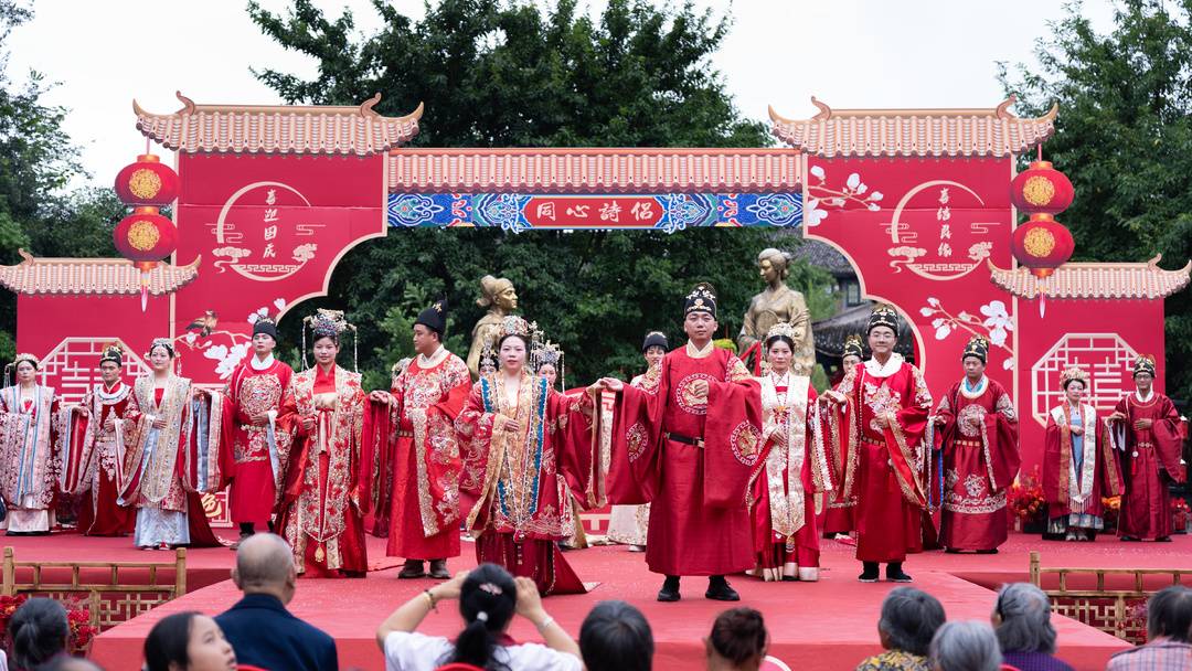 四川遂宁安居:黄峨古镇上演国潮婚俗秀“中式”浪漫情暖双节