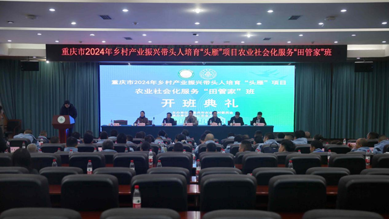 11月26日上午,重庆市2024年乡村产业振兴带头人培育“头雁”项目农业社会化服务“田管家”班开班典礼在四川农业大学雅安校区举行。